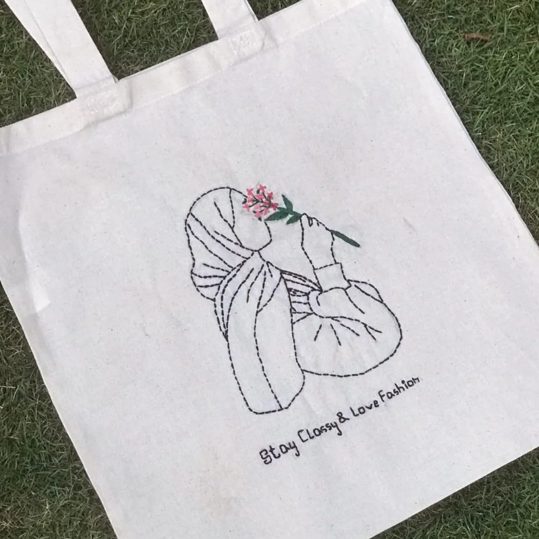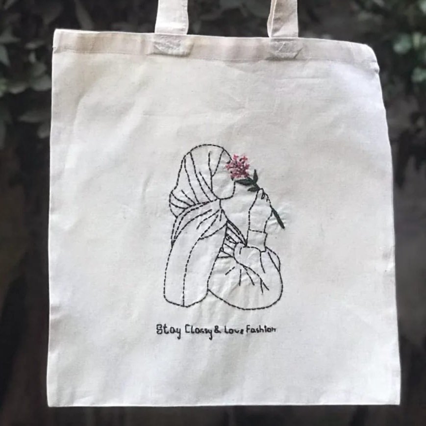 Be the first to review “Hand-Embroidered Hijab Lady Tote Bag” Cancel reply